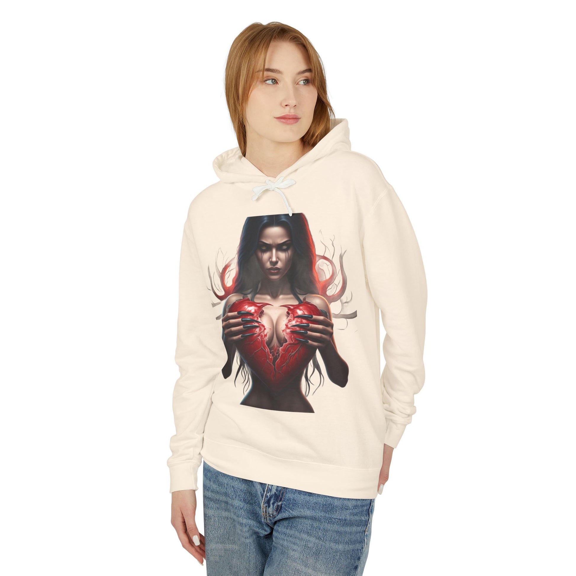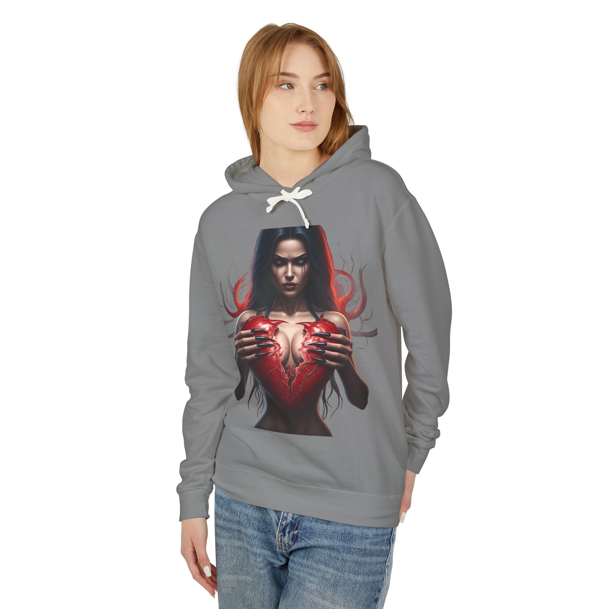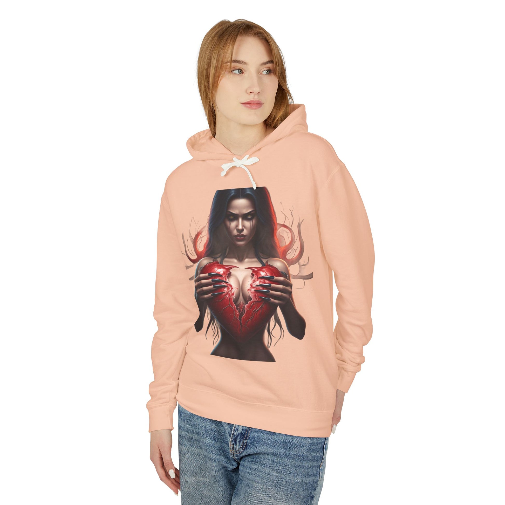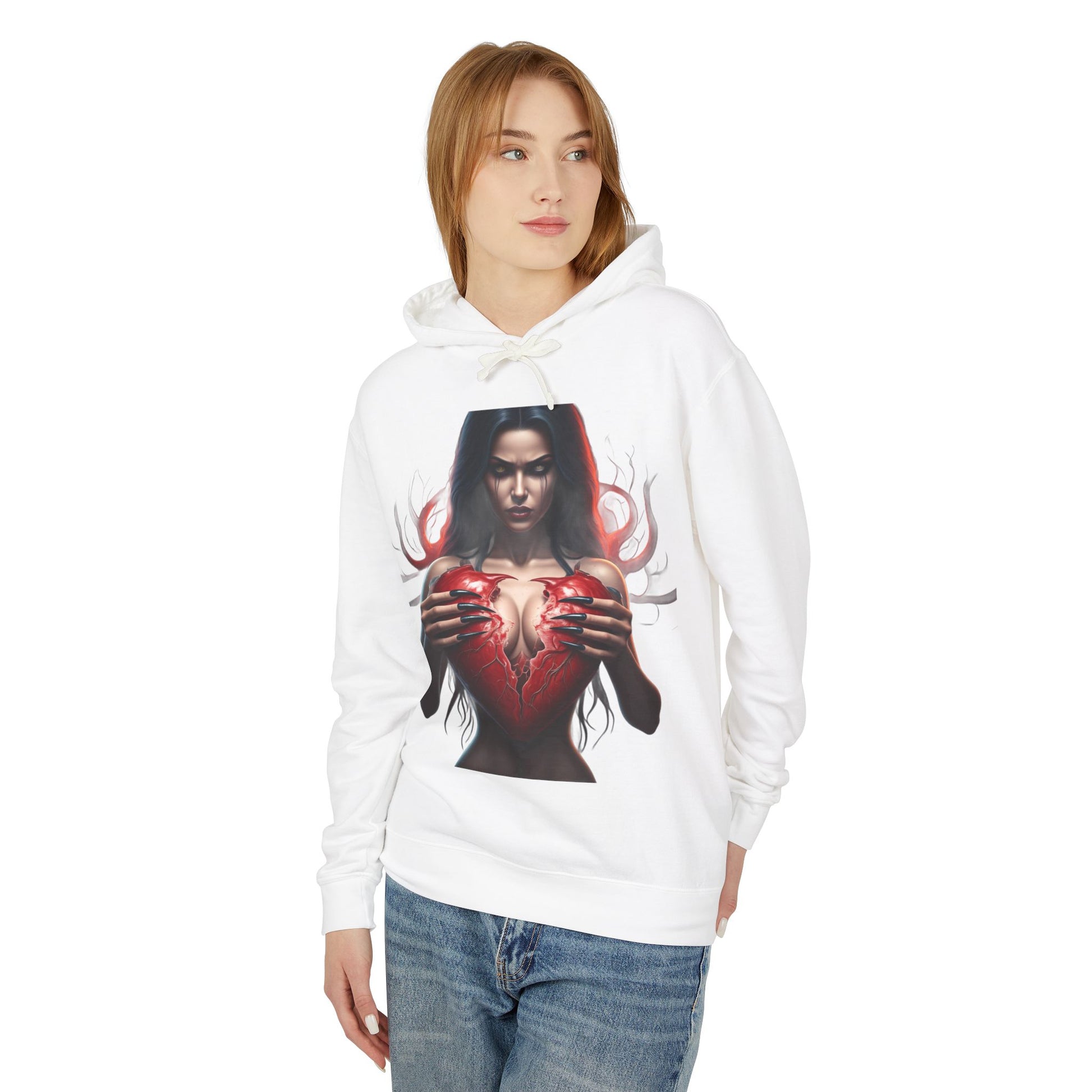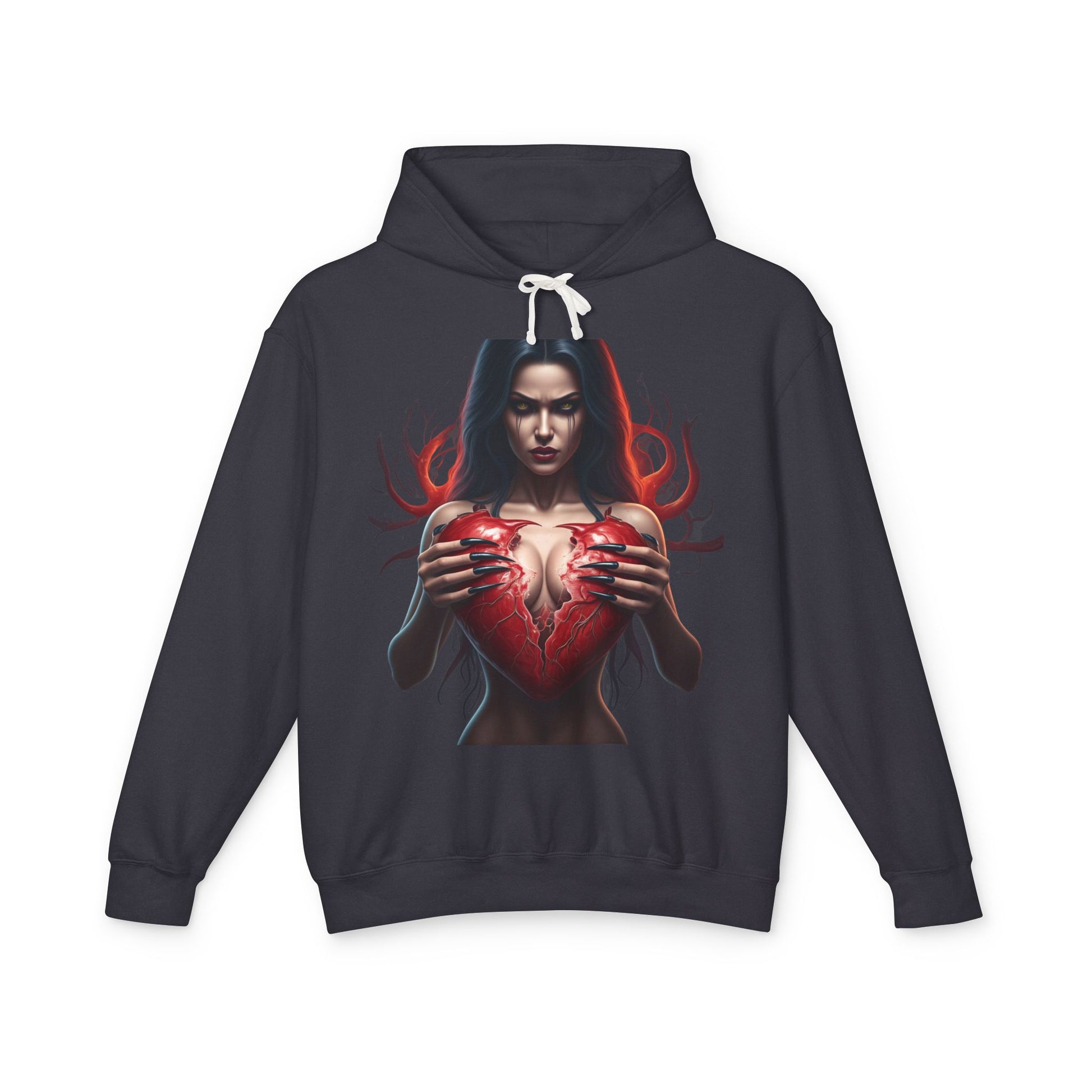 This hoodie features a powerful design of a girl ripping a man's heart in half, creating a bold and edgy look. Perfect for those who love dark and dramatic expressions in their fashion. Ideal for individuals looking to make a statement during Halloween, gothic events, or edgy everyday wear.
